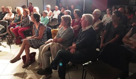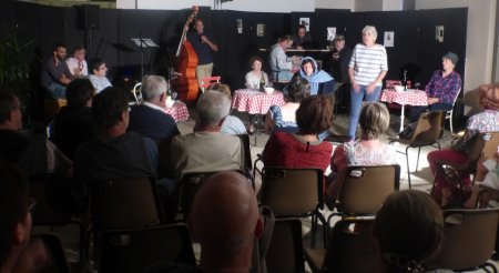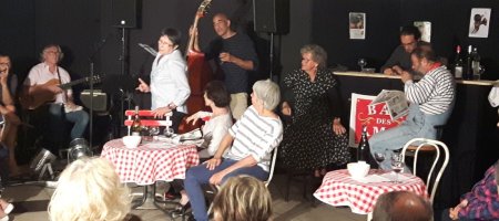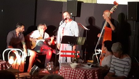 Après Desnos, Queneau, Cadou, le groupe du PLEIN TEMPS DES POETES a choisi de présenter un poète finalement peu connu du grand public, alors que certains de ses textes, notamment de chansons »Syracuse » ou « Mon truc en plume » sont connus de tous.La prestation des invités de La Vanaude fut tout simplement SUBLIME… Ce groupe atteint, osons le dire, une forme de plénitude avec un bel étayage musical.Un vrai talent au service des oeuvres de Bernard Dimey, auteur qui mérite largement d’être plus connu.Cette soirée invite à lire ou à relire Dimey…