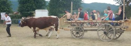 Deux braves bœufs ont aussi promené des spectateurs dans un très beau char à foin.