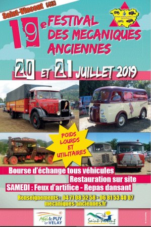 La Vanaude en sortie : »Ce week end du 20 et 21 juillet 2019 a eu lieu le 19 ème festival des mécaniques anciennes à Saint Vincent en Haute Loire.La Vanaude a été obligée de faire deux groupes car il y avait aussi La Fiesta de Ritmo et on ne pouvait pas être à deux endroits en même temps !D’ailleurs, beau clin d’œil, il y avait à Vanosc la Banda de Vorey, village situé à 5 km de Saint Vincent. »Le Besset Berliet vanoscois sur la plaque de l’événement.Le stand musée du carBernard ArchierDes élus de St Vincent dans l’Isobloc