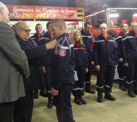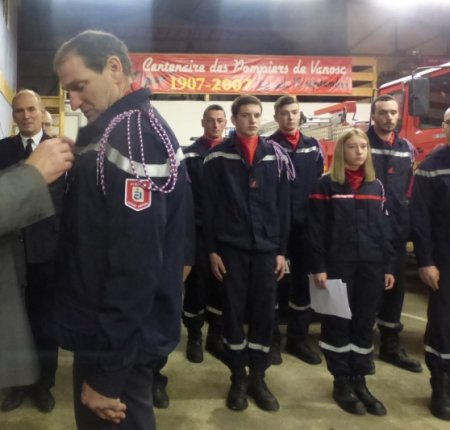 Les pompiers vanoscois ont organisé samedi leur dernière Ste Barbe dans leur caserne, en présence du colonel Mathevet représentant le SDIS, du capitaine Duvert représentant l’Union Départementale, des chefs de corps de Bourg-Argental, Roiffieux, Villevocance et Vocance et de nombreux anciens pompiers locaux, d’Yves Boulanger, Irène Pain et Jean-Pierre Laffont pour le conseil municipal. Marc Gay, Véronique Berland et Martine Dumas anciens élus étaient également présent.(En fin d’article les interventions de Jean-Paul Mathevet et de Yves Boulanger)Les anciens et les jeunes recrues.Intervention de René BessetPrésence appréciée de RitmofiestaRémy Dentressangle et son équipe ont parfaitement préparé cette cérémonie 2019.