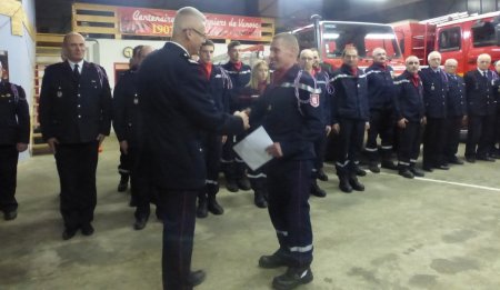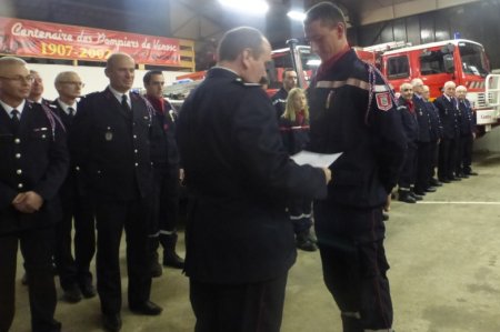 René Besset, chef de corps a rappelé les principales statistiques du centre local et a appelé les récipiendaires du jour. Philippe Lafont, Jérôme Plenet, et Jérôme Desglène se sont vus remettre la médaille correspondant à dix années de présence. Kévin Berland et Jérôme Plénet ont reçu leur grade de caporal. Diverses attestations de formation ont été remises à Kévin Berland , Gilles Bonnet, Eva Bonnet, Benoît Januel, Mathis et Guillaume Lafont et Jérôme Plénet.