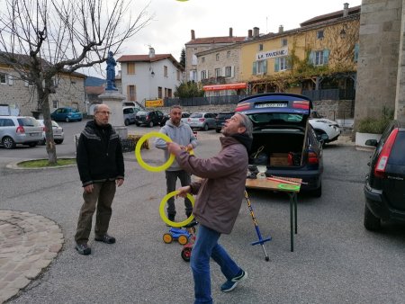 Les jeux, courte-boule, grenouille, belote, jonglerie ont permis aux jeunes et moins jeunes de se distraire agréablement, comme du reste les tours de découverte de side car avec Philippe Brunier.