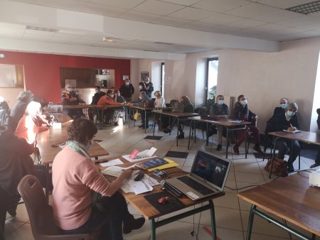 Malgré le froid et la COVID, une quarantaine de personnes se sont retrouvées pour l’Assemblée Générale de La Vanaude, ce samedi à 15 heures, en respect scrupuleux des consignes sanitaires imposées.
