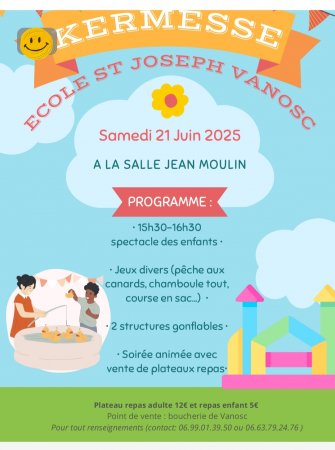 L’Ecole Saint Joseph organise sa kermesse le samedi 21 juin à partir de 15h30 à la salle Jean Moulin.
