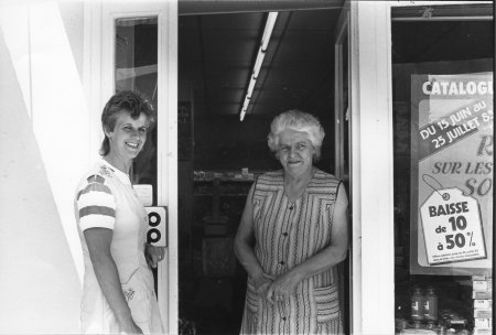 En période estivale, il y avait toujours plusieurs groupes qui, à la fraîche, bavardaient ici ou là dans le bourg. L’un des points de rendez-vous très prisé se trouvait sur la petite terrasse du magasin.