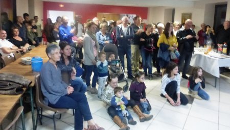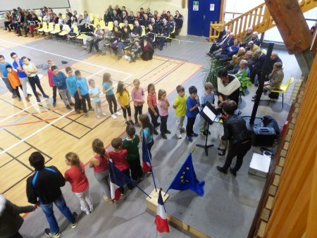 Après le dépôt de gerbe, Maël, Céline et Louise ont donné lecture du message de monsieur le Président de la République. Cette première partie s’est naturellement terminée au son de la marseillaise entonnée par Ritmofiesta.