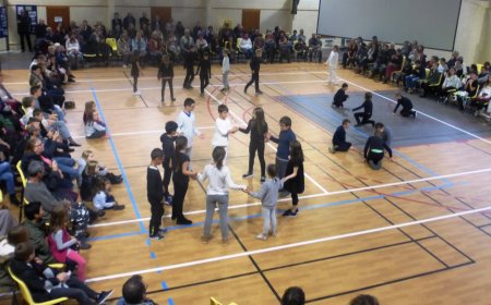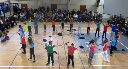 Les élèves de l’école publique Raymond Aubrac et de l’école privée St Joseph ont alors présenté leur spectacle élaboré avec Amandine Dorel et Marie Ginestière , intervenantes.