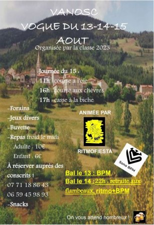Comme chaque année, les conscrit.e.s comptent sur vous pour que la traditionnelle vogue soit un succès. Notez bien les différentes festivités et n’oubliez pas de réserver vos repas.