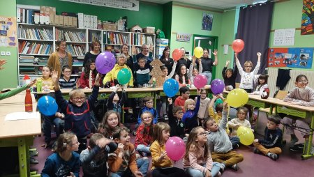 La vente d’objets fabriqués à l’école,de gâteaux confectionnés par les familles et des tableaux réalisés par notre artiste ont permis de récolter la somme de 993 €.