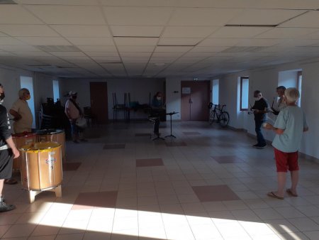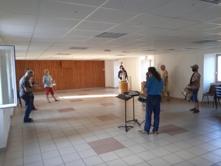 Le jeudi 3 juin 2021 a eu lieu la reprise de la batucada de Vanosc en salle. C’était la première dans l’annexe depuis le dernier confinement, le jeudi 27 mai la répétition a eu lieu sur la place de l’église de Vanosc.